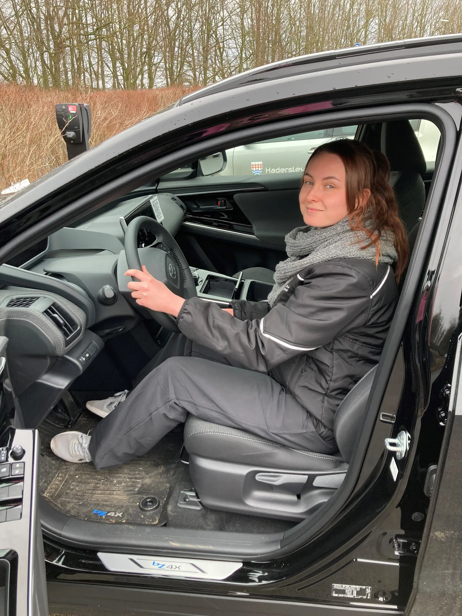 Social- og sundhedshjælper Janina Kjær er klar til at køre ud til borgere i en af de nye Toyota bZ4X elbiler.